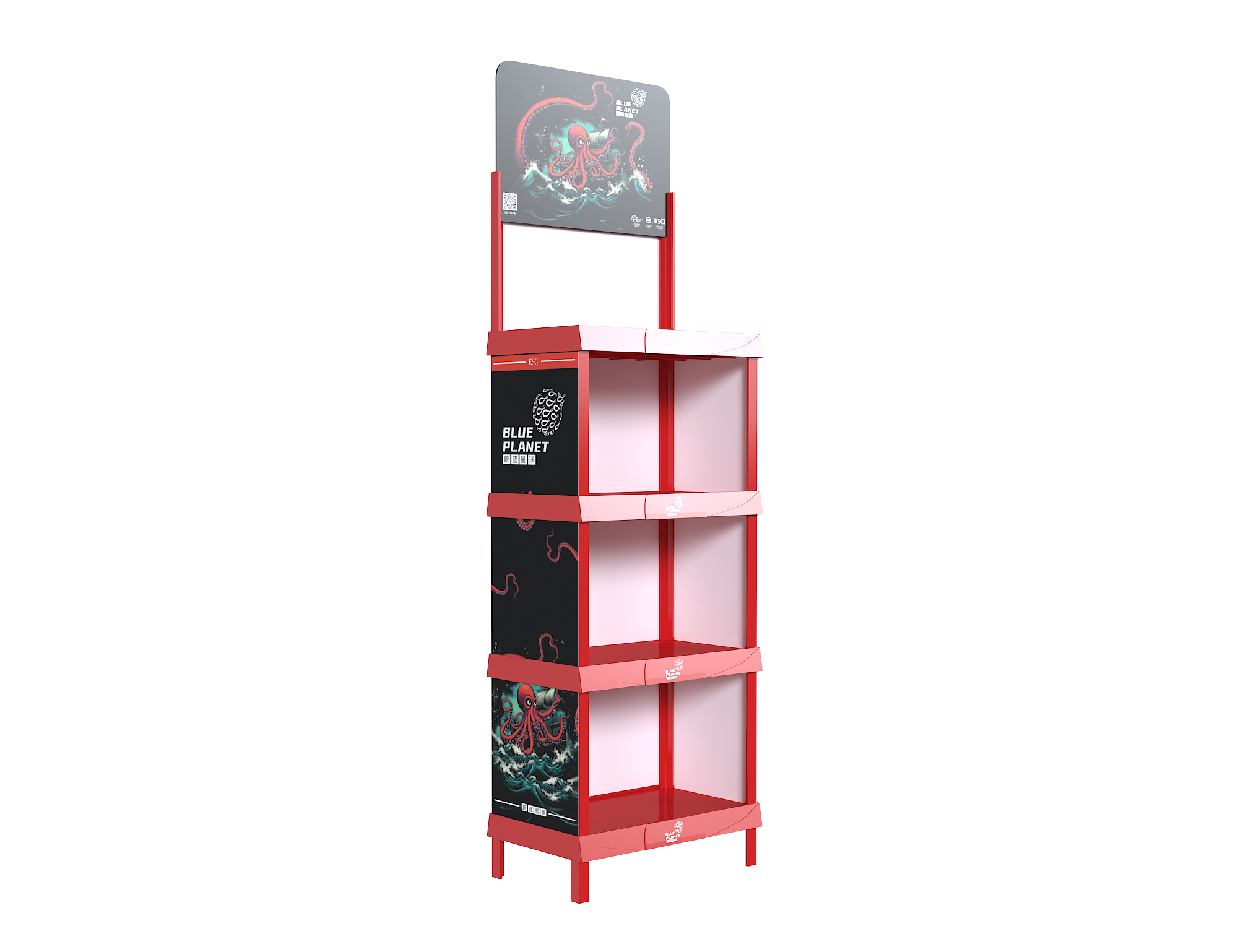 SL-LD-1019 is a premium mobile basket floor display rack from Blue Bull, engineered for stability, flexibility, and efficiency to maximize product impact at retail.